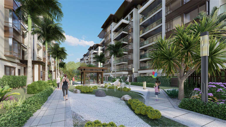 项目资讯:三亚开创白玉海棠项目园林设计采用了“六重五星四季”景观概念,六重景观分别为草坪、花卉、小灌木、大灌木、中小乔和高大乔木,讲究层次叠级和色彩搭配,让整个社区的园林绿化层次分明,更具有艺术性和观赏性。